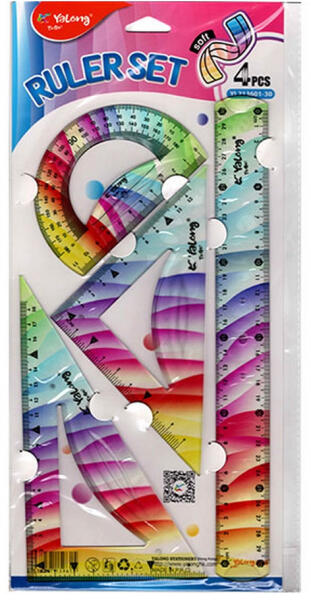 4 db-os flexibilis vonalzó szett szivárvány színben
