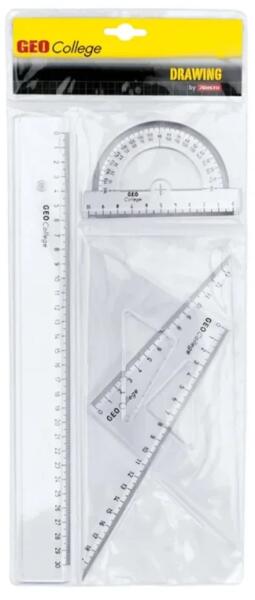 ARISTO Vonalzókészlet GEO College-4 db, Víztiszta4db-os víztiszta vonalzókészlet További információk: Stabil műanyag, metszett és másolható szélek1 mm-es léptékKészlet tartalma: 1 db 180 fokos szögmérő1 db 30 cm-es egyenes vonalzó1 db 45 fokos és 1 db 60 fokos vonalzóAnyaga: PS