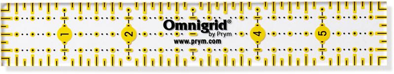 PRYM - Omnigrid patchwork vonalzó A körkés és vágólap mellett elengedhetetlen kelléke egy foltvarró készletnek. Kiváló minőségü műanyagból készül. Körkés használatára tervezve. A körkés pengélye tökéletesen siklik a vonalzó éle mellett. Cm és inch jelölésekkel. 300, 450 és 600 jelölésekkel. Sárga és fekete jelölésekkel, hogy világos és sötét anyagokon is láthatóak legyenek. Mérete: 1x6 inch