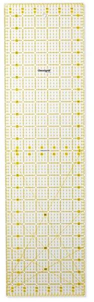 PRYM - Omnigrid patchwork vonalzó A körkés és vágólap mellett elengedhetetlen kelléke egy foltvarró készletnek. Kiváló minőségü műanyagból készül. Körkés használatára tervezve. A körkés pengélye tökéletesen siklik a vonalzó éle mellett. Inch jelölésekkel. 300, 450 és 600 jelölésekkel. Sárga és fekete jelölésekkel, hogy világos és sötét anyagokon is láthatóak legyenek. Mérete: 6,5x24 inch