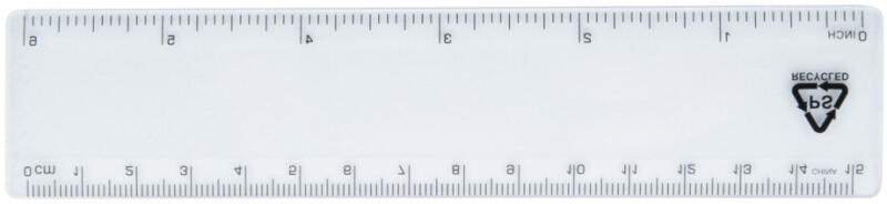 Újrahasznosított PS műanyag vonalzó, 15 cm.