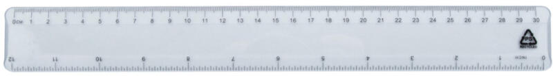 Újrahasznosított PS műanyag vonalzó, 30 cm.