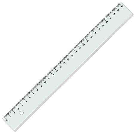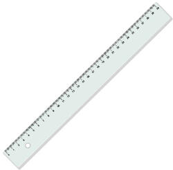 Egyenes műanyag vonalzó, 30 cm-es hosszúsággal.